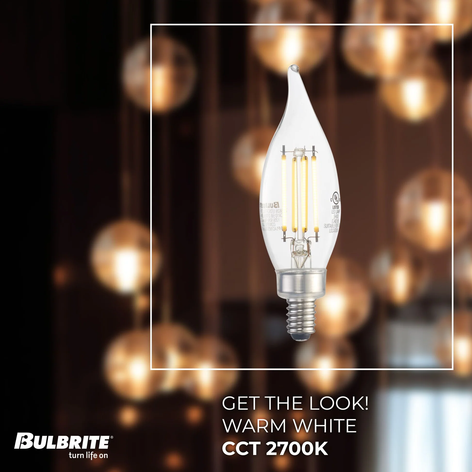 BULBRITE LED CA10 CANDELABRA SCREW (E12) 5W FULLY COMPATIBLE DIMMING FILAMENT LIGHT BULB 2700K/WARM WHITE 60W INCANDESCENT EQUIVALENT 4PK (776628)