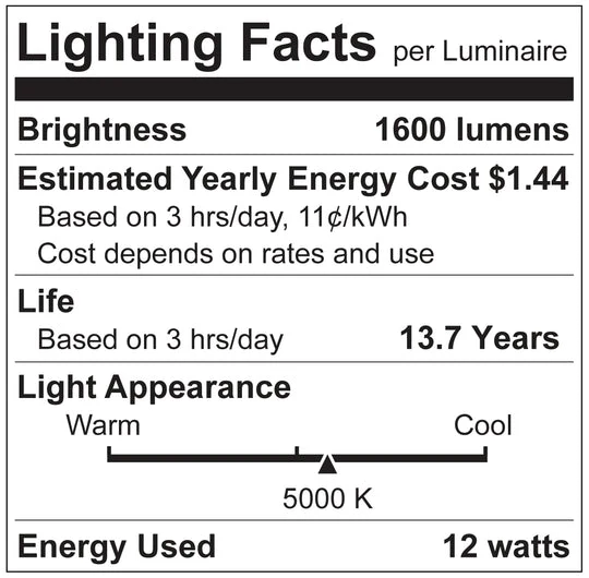Luxrite LED A19 Light Bulb, E26 Medium Base, 12W, 5000K - Bright White, 1600 Lumens, 80 CRI, Clear Glass Filament Finish, Dimmable (LR21663)