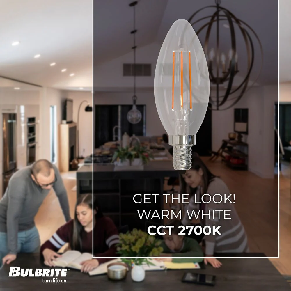 Bulbrite 4 Watt Dimmable Clear Filament B11 Candelabra (E12) LED Bulb - 350 Lumens, 2700K, and 90 CRI