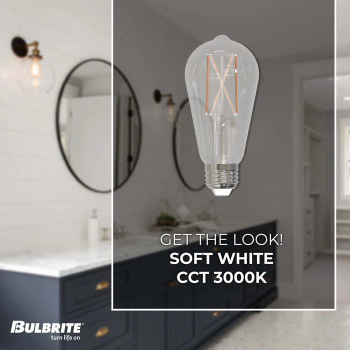 BULBRITE (Pack of 2) LED 8.5 Watt Vintage Edison Dimmable ST18 Medium (E26) LED Bulbs - 850 Lumens, 3000K, and 90CRI