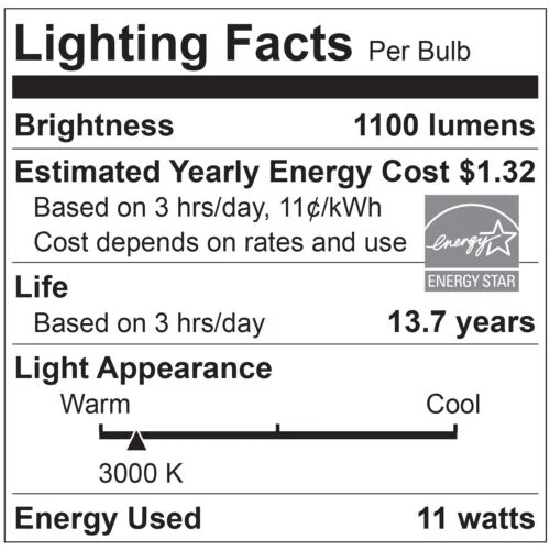 Sunlite 80859-SU LED A19 Light Bulb, Non-Dimmable 11 Watt (75W Equivalent), 1100 Lumens, Medium (E26) Base, UL Listed, 30K - Warm White Pack of 12