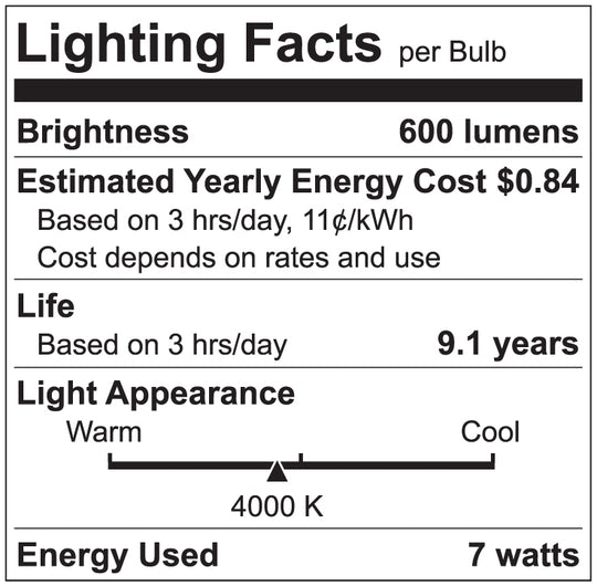 Luxrite LED 7W A15 Bulb, 4000K- Cool White, 600 Lumens, 80 CRI, Frost Finish, Dimmable (LR21352)