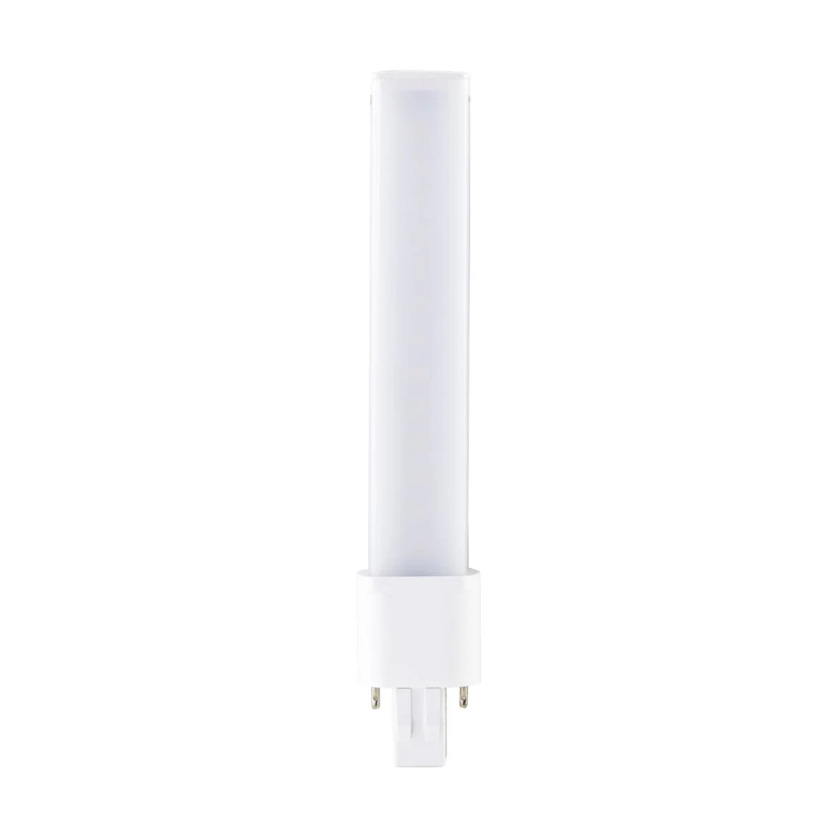 S28726 6W/LED/CFL/830/GX23/BP/G2 6 Watt LED PL 2-PIN; 3000K; 600 Lumens; GX23 base; 50000 Average rated hours; 360 deg. Beam Angle; 120-277 Volt; Type B; Ballast Bypass