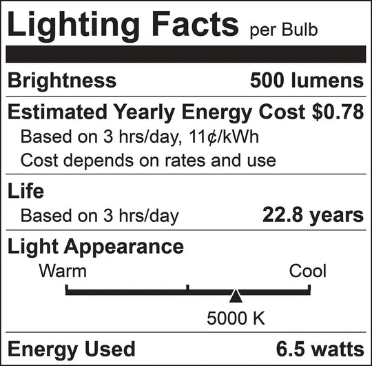 Luxrite LED T6.5 Tubular Light Bulb, E26 Medium Base, 5W, 2700K - Warm White, 80 CRI, Clear Finish, Dimmable (LR21622)