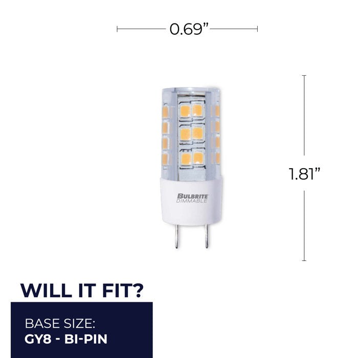 BULBRITE LED T4 BI-PIN (GY8) 4.5W DIMMABLE LIGHT BULB 2700K/WARM WHITE 35W INCANDESCENT EQUIVALENT 2PK (770588)