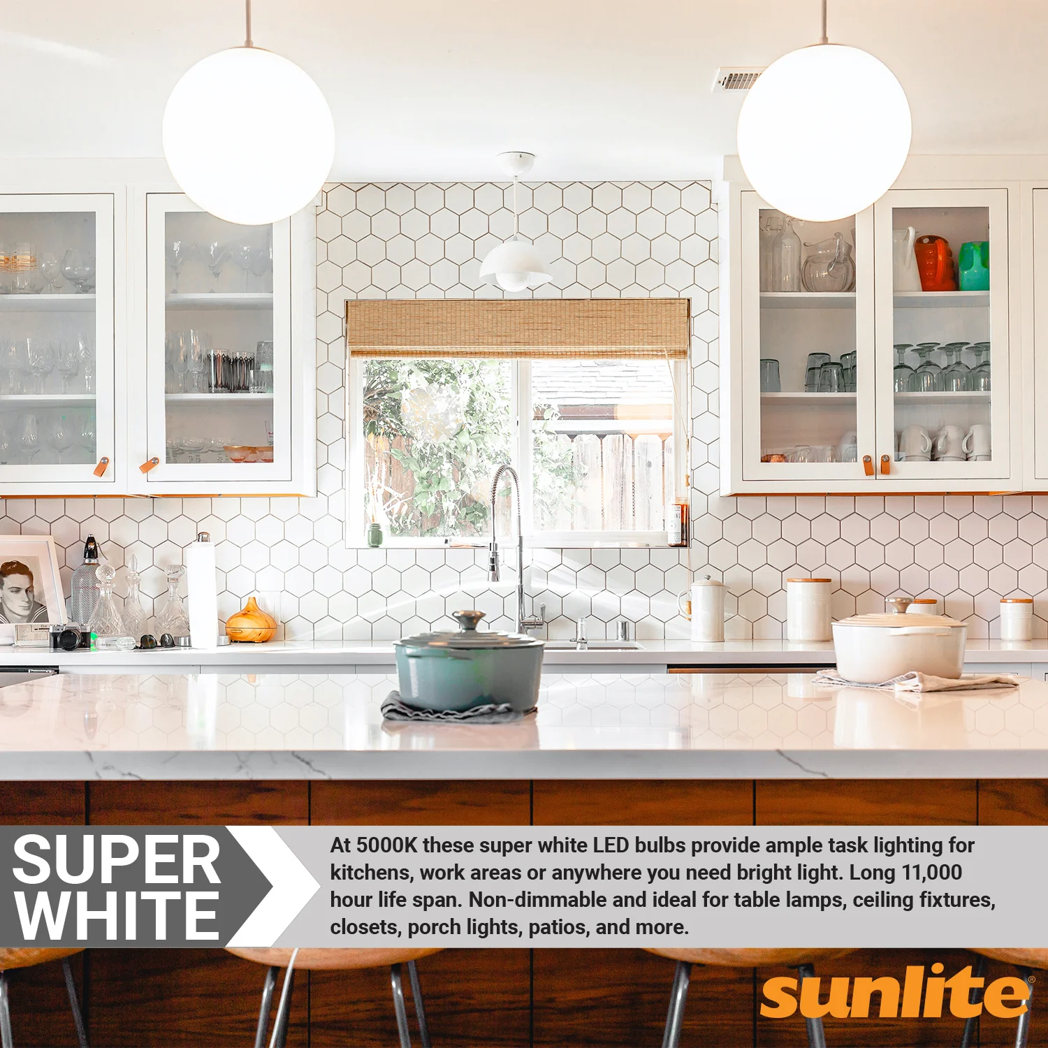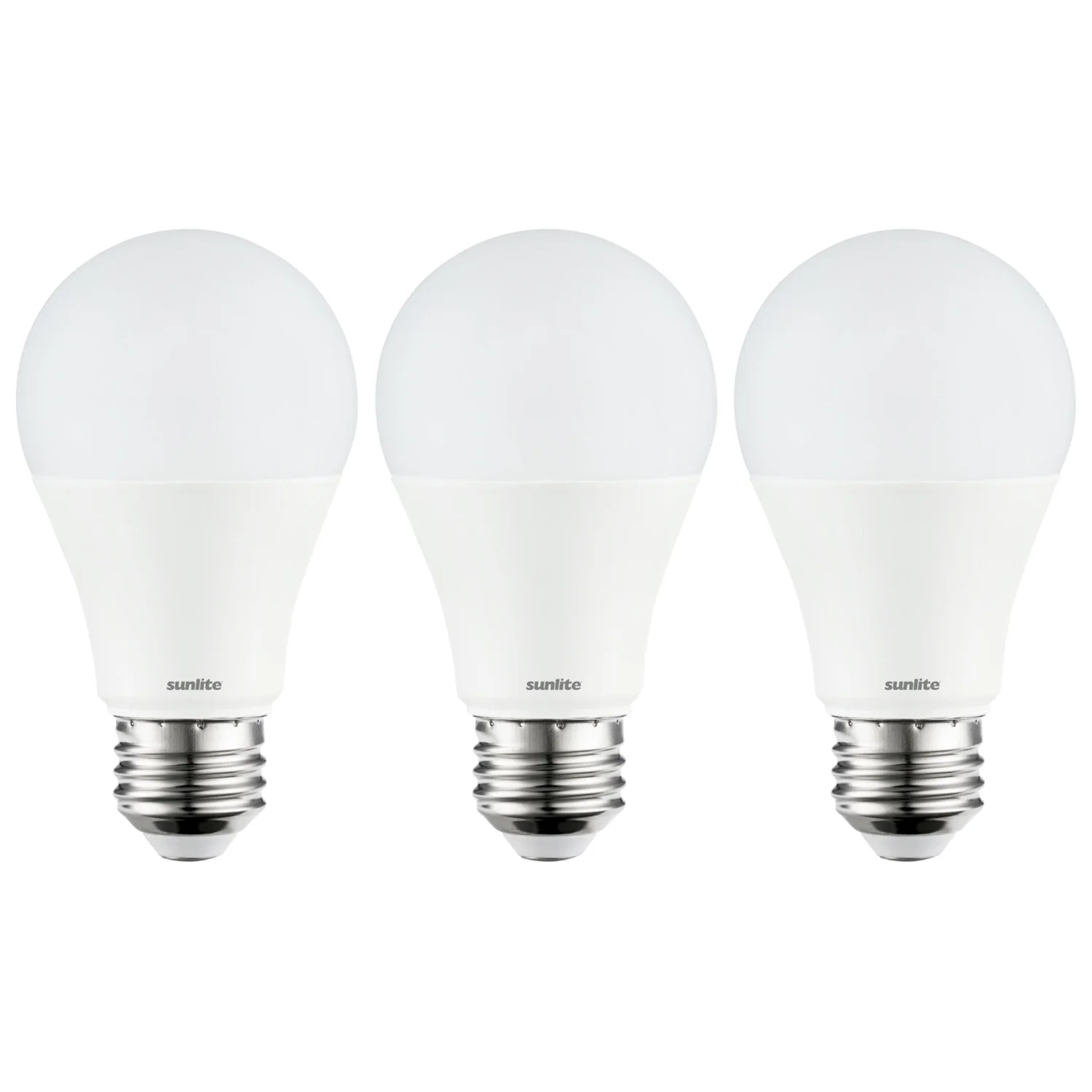 3 Pack Sunlite A19 LED Bulbs, 9 Watt (60 Watt Equivalent), 800 Lumens, Medium (E26) Base, 5000K Super White, UL Listed