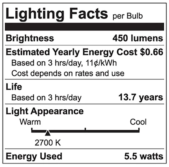 Sunlite G16.5/LED/5W/D/E12/CL/ES/27K/3PK Dimmable Energy Star 2700K Candelabra Base Warm White LED Globe G16.5 5W Light Bulb (3 Pack), Clear