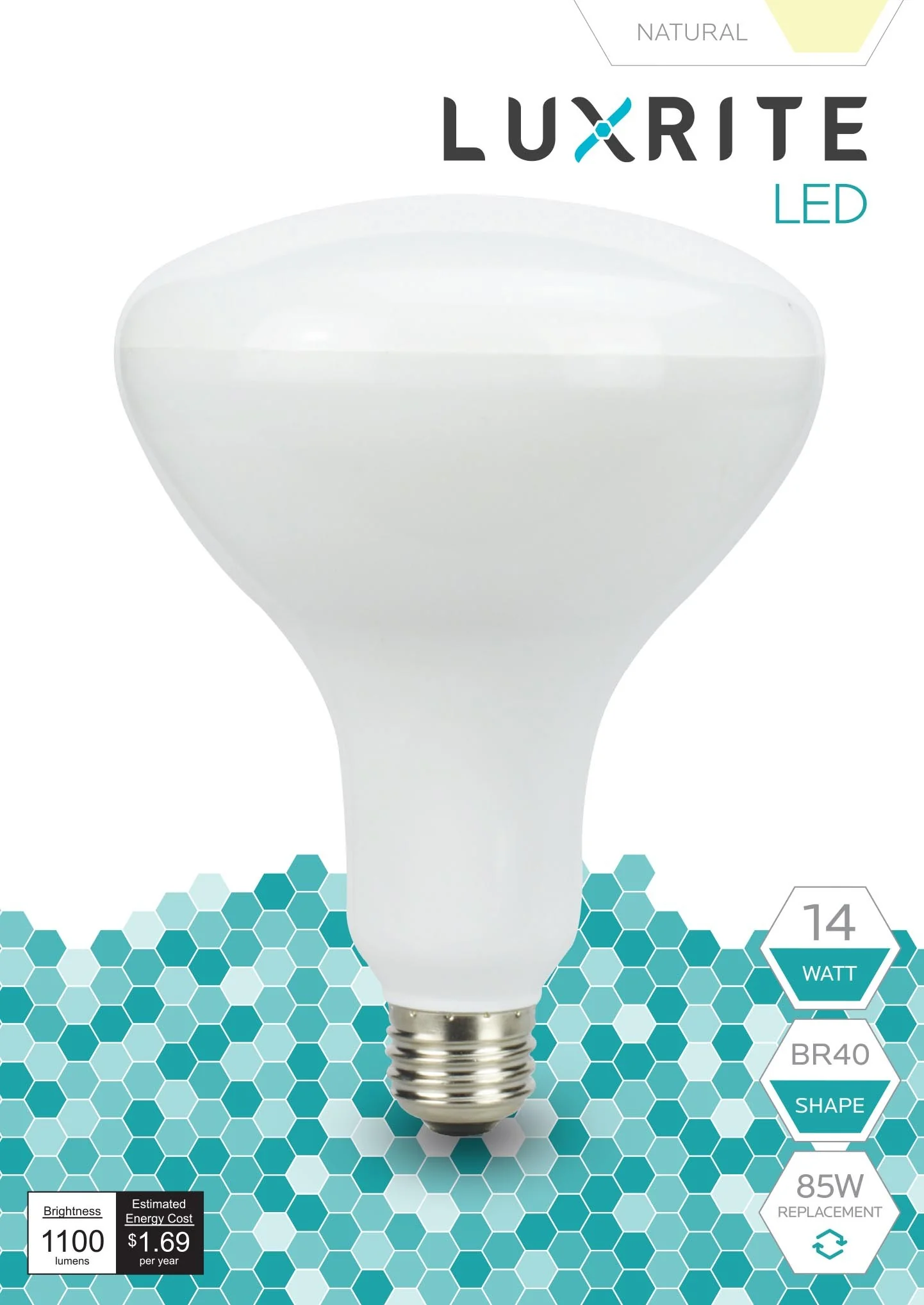 Luxrite LED BR40 Reflector Light Bulb, 14W, 1100 Lumens, 3500K - Natural, 80 CRI, Frosted White Finish, Dimmable (LR31822)