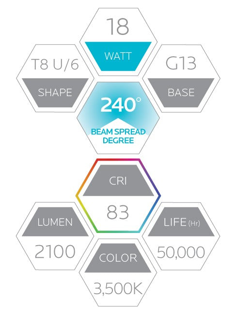 Luxrite Retrofit Tube LED18T8/35K/U6/UNV 3500K Neutral White