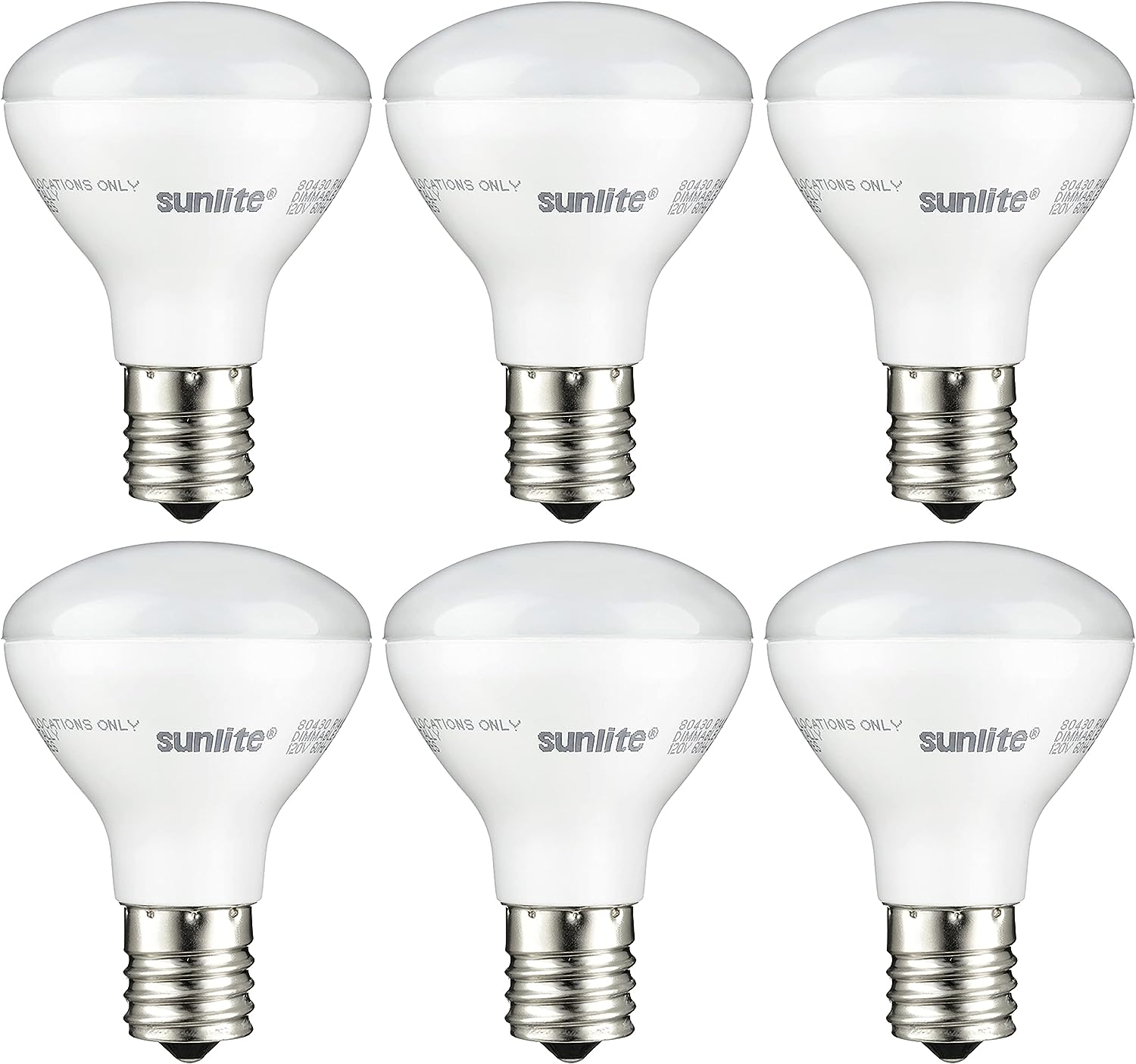 Sunlite LED R14 Mini Reflector Floodlight Light Bulb, 4 Watts (25W Equivalent), 250 Lumens, Intermediate (E17) Base, Dimmable, ETL Listed, 3000K Warm White, 6 Count