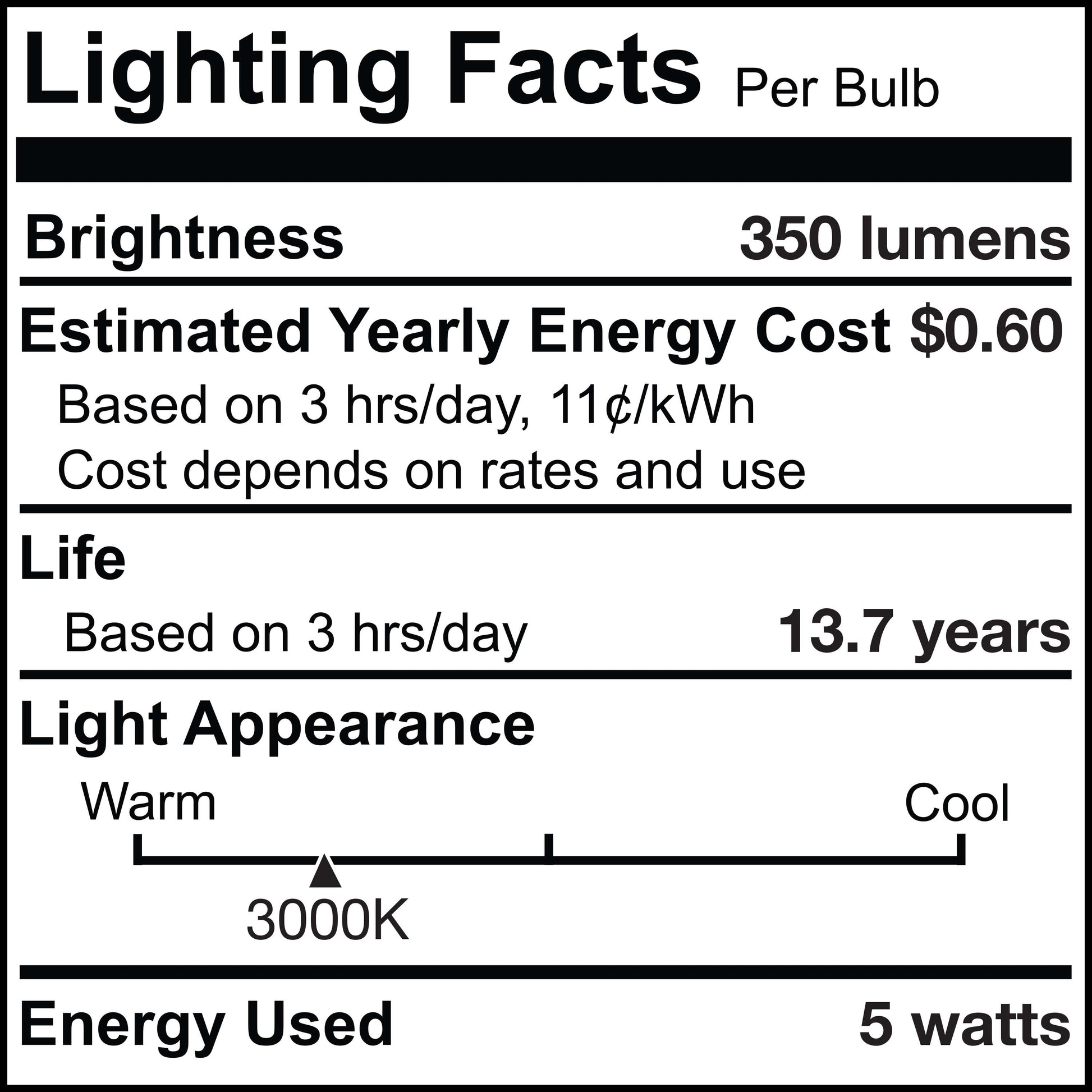 Sunlite 40294 LED G16.5 Globe Light Bulb, 5 Watts (40W Equivalent), 350 Lumens, Dimmable, Candelabra E12 Base, Short Bulbs, Vanity Bulbs, Energy Star Listed, Clear, 6 Count
