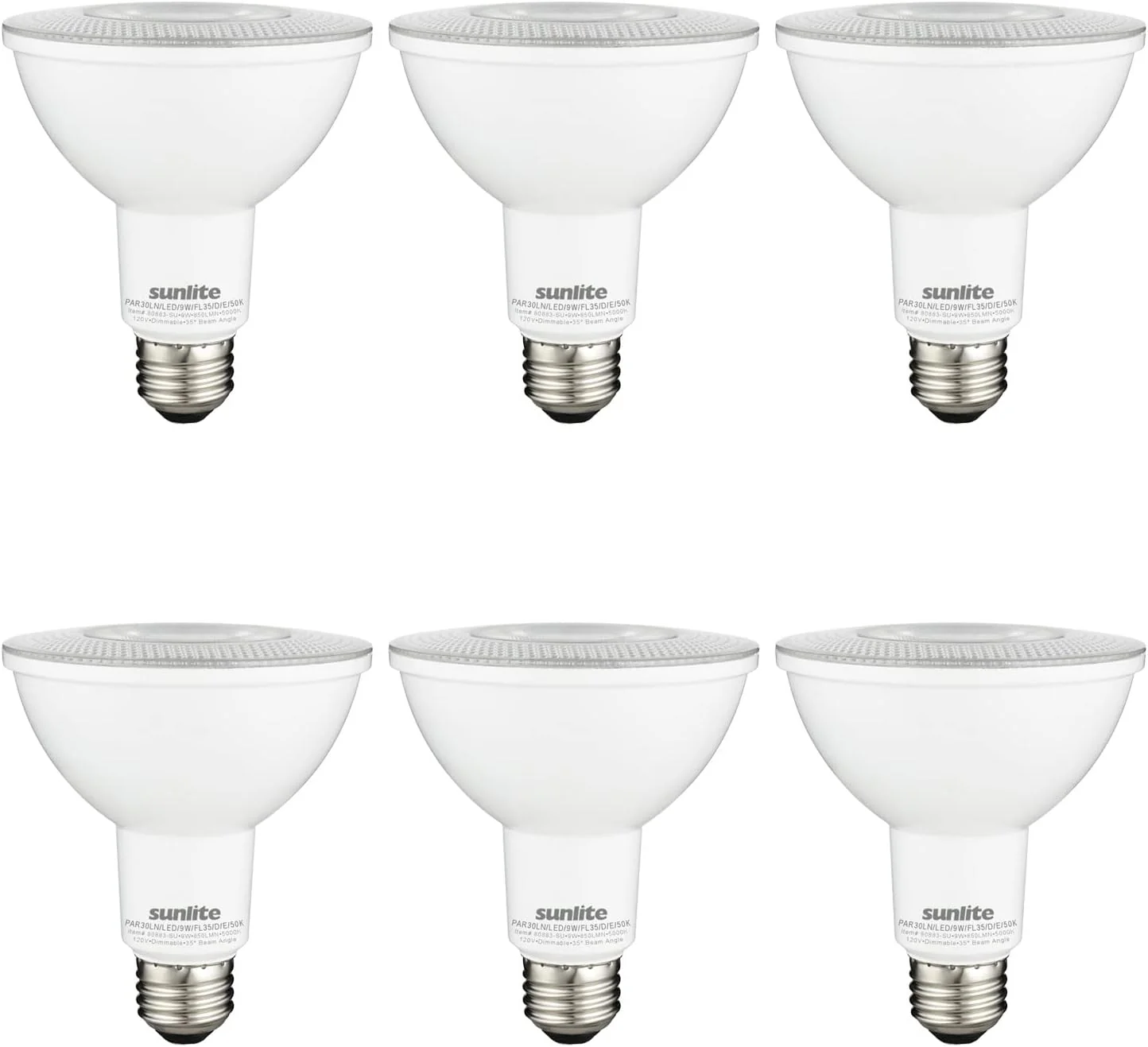 Sunlite 80883 LED PAR30 Long Neck Recessed Light Bulb, 10 Watt, (75W EQ), 800 Lm, Medium (E26) Base, Dimmable, UL Listed, Wet Location, indoor/outdoor, Energy Star Certified, 5000K Super White, 6 Pack