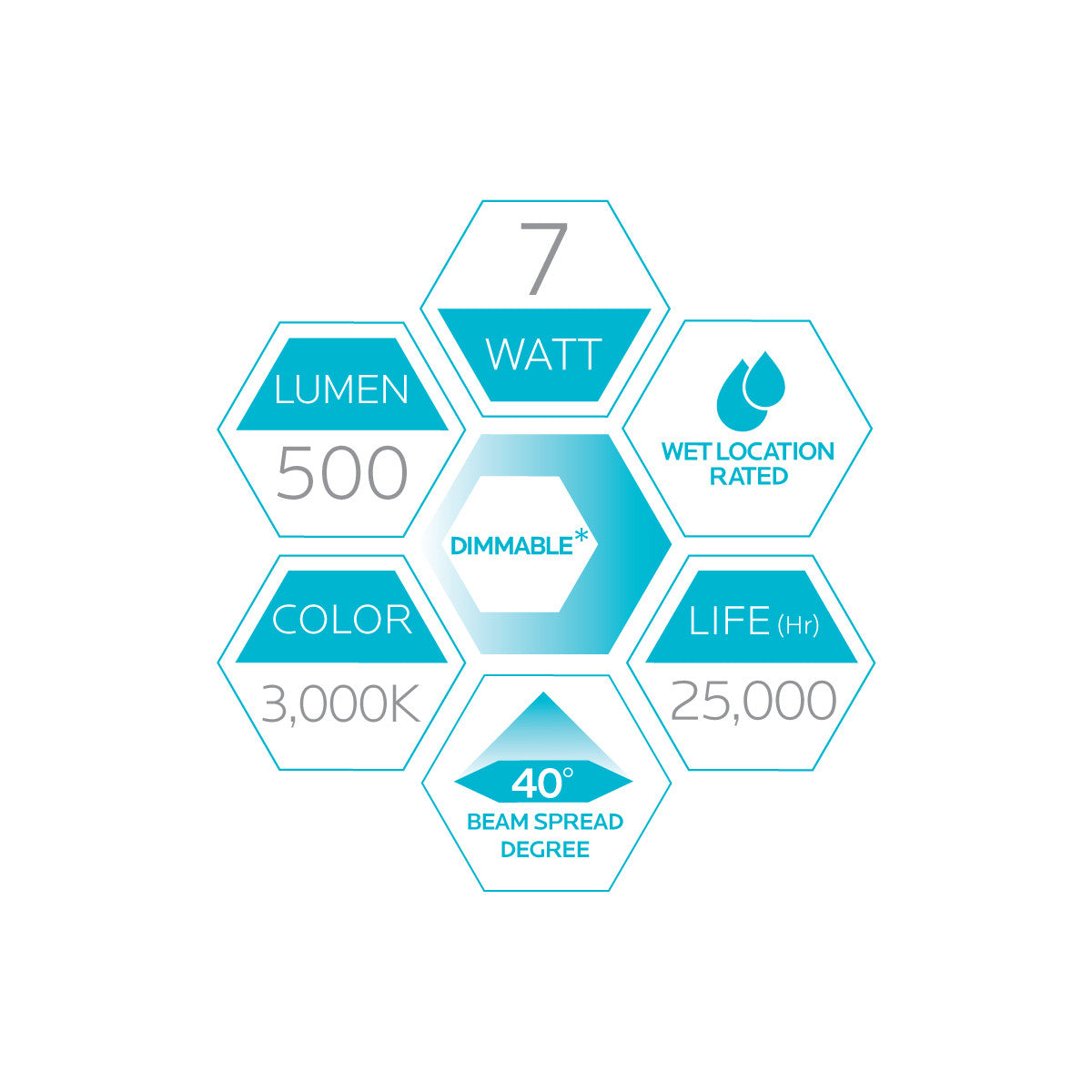 Sunlite 80084-SU LED MR16 Short Neck Light Bulb 7 watts (50W Equivalent), 500 Lumens, Medium (E26) Base, Dimmable, ETL Listed, 40K- Cool White, 1 Pack