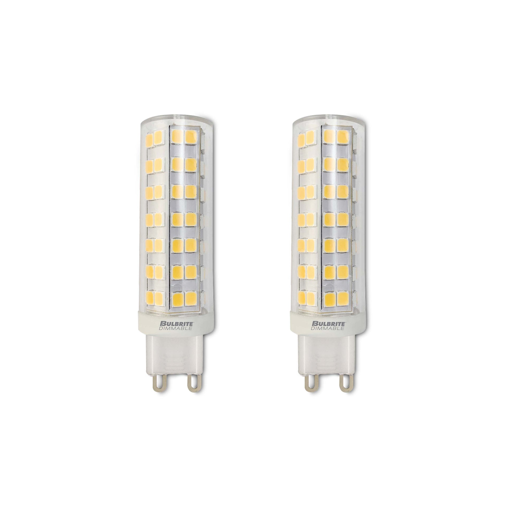 Bulbrite Pack of (2) 6.5 Watt 120V Dimmable Clear T6 LED Mini Light Bulbs with Bi-Pin (G9) Base, 2700K Warm White Light, 700 Lumens
