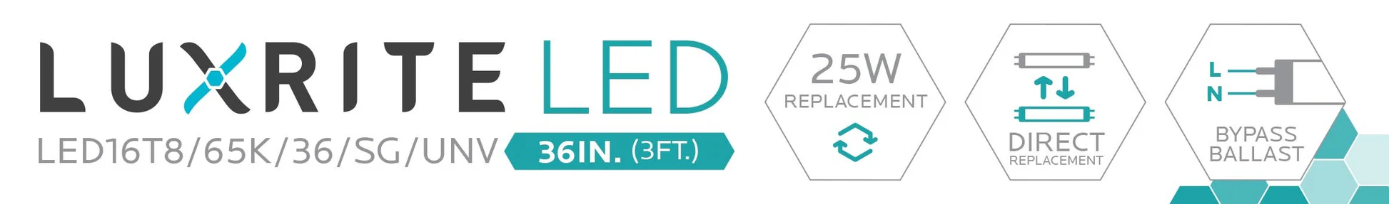 Luxrite LED 3' T8 Universal 16W Shatter Proof Ballast Compatible Light Tube, G13 Base, 1600 Lumens, 6500K - Daylight, 83 CRI, Frosted White Finish (LR34079)