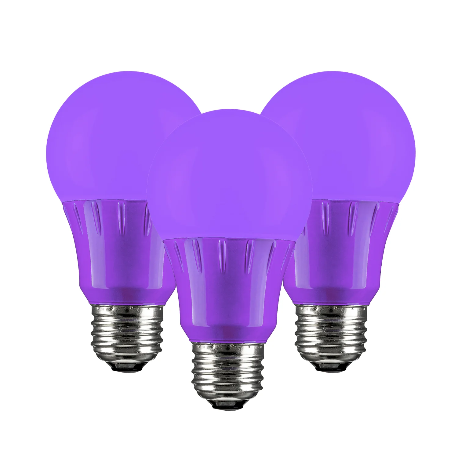 Sunlite 41527-SU LED A19 Colored Light Bulb, 3 Watts (25w Equivalent), E26 Medium Base, Non-Dimmable, UL Listed, Purple 3 Pack