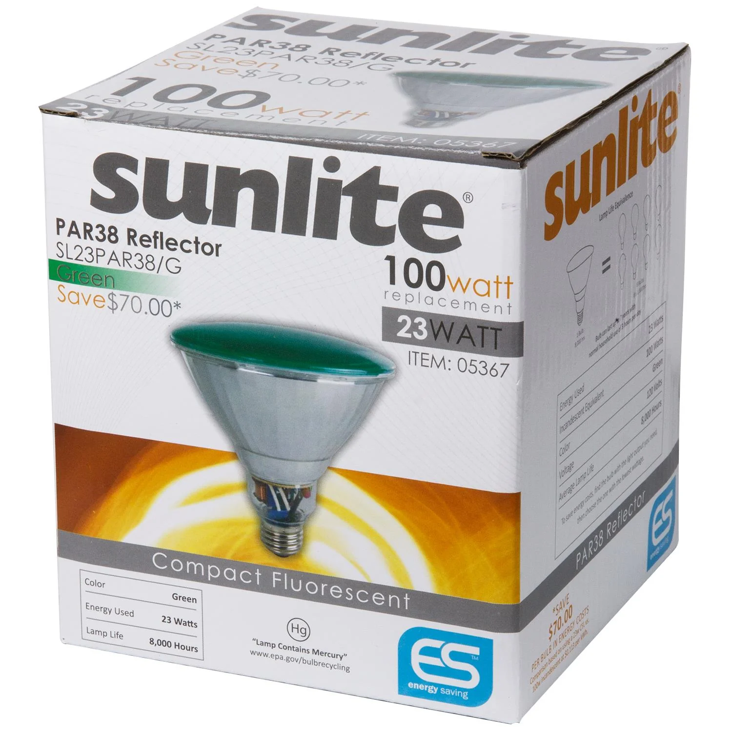 Sunlite 23 Watt Colored PAR38 Reflector, Medium Base, Green