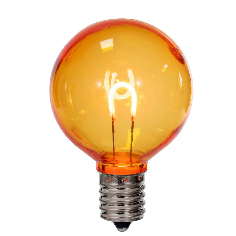 Vickerman G50 Transparent U-Shaped Filament Amber Bulb, E17 Base, .6 Watts, 25 Pcs Assorted/Bag. Colors included are Blue, Red, Green, Purple and Amber.
