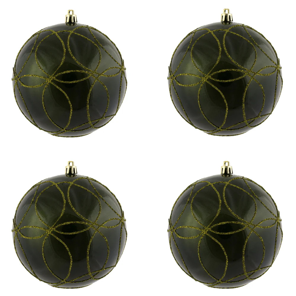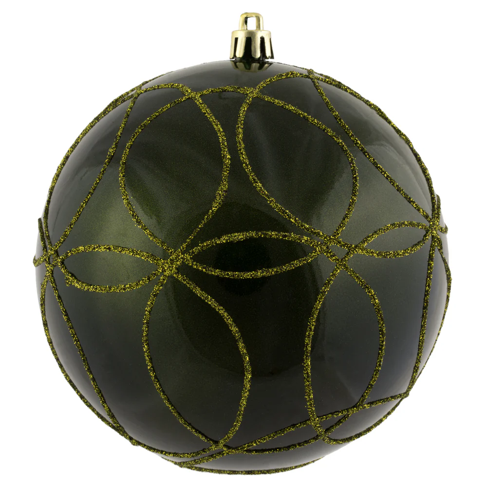 Vickerman 4.75" Olive Candy Ornament with Circle Glitter Pattern 4 per Bag