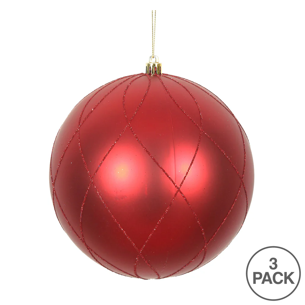 Vickerman 6" Red Matte and Glitter Swirl Ball Ornament 3 per Box