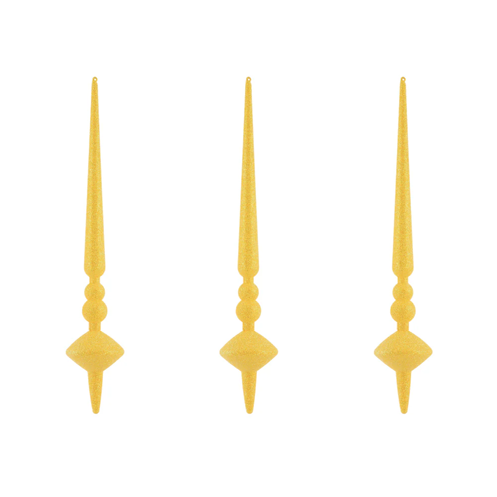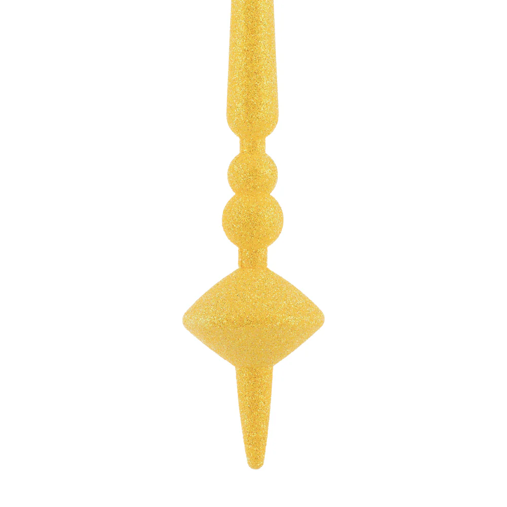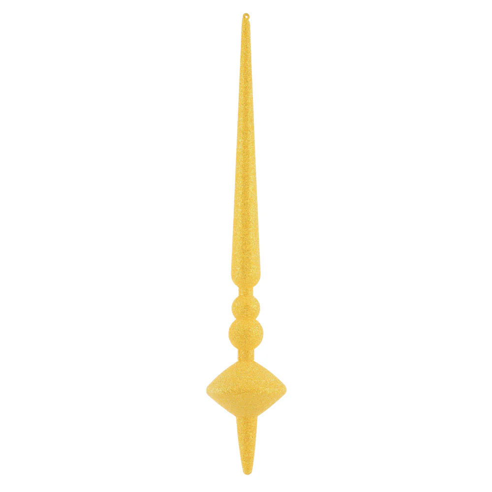 Vickerman 12" Yellow Glitter Cupola Finial. This long finial ornament adds depth and texture to any holiday decorating project. Made with shatterproof plastic. Includes 3 pieces per bag.