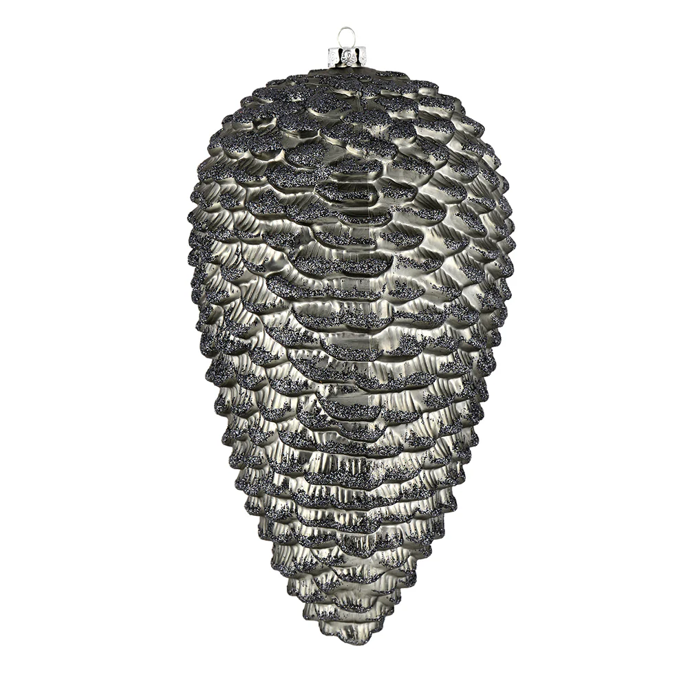 Vickerman 21" Pewter Matte Finial Ornament with Glitter Accents