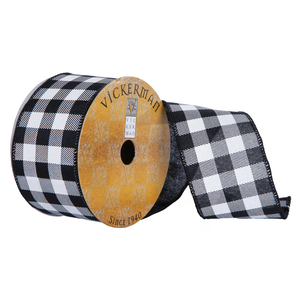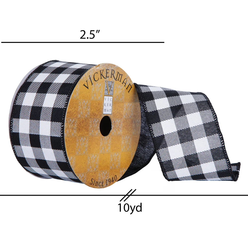 Vickerman 2.5" x 10 Yards Black and White Checker Plaid Christmas Ribbon
