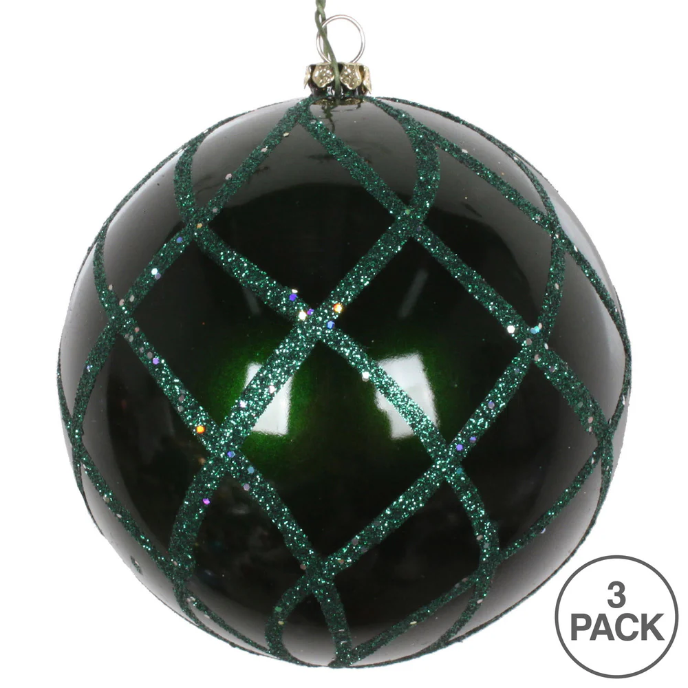 Vickerman 4" Emerald Candy Glitter Net Ball Ornament 3 per Bag