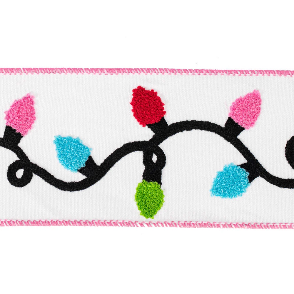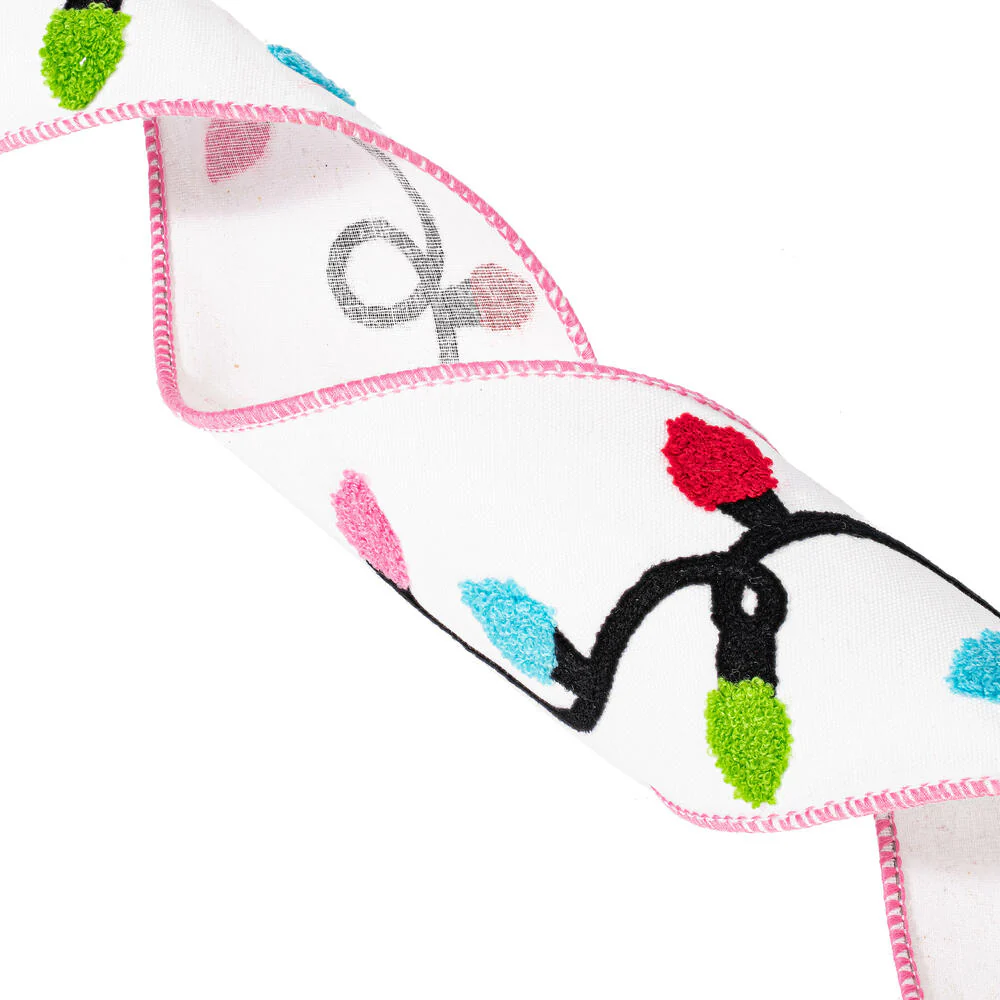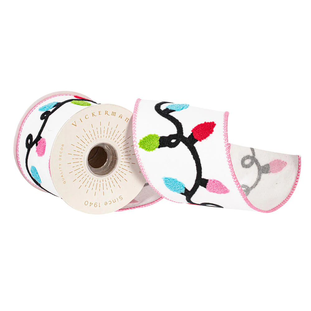 Vickerman 4" x 5 Yards White Use Pink Blue Green Red as bulbs Ribbon.
