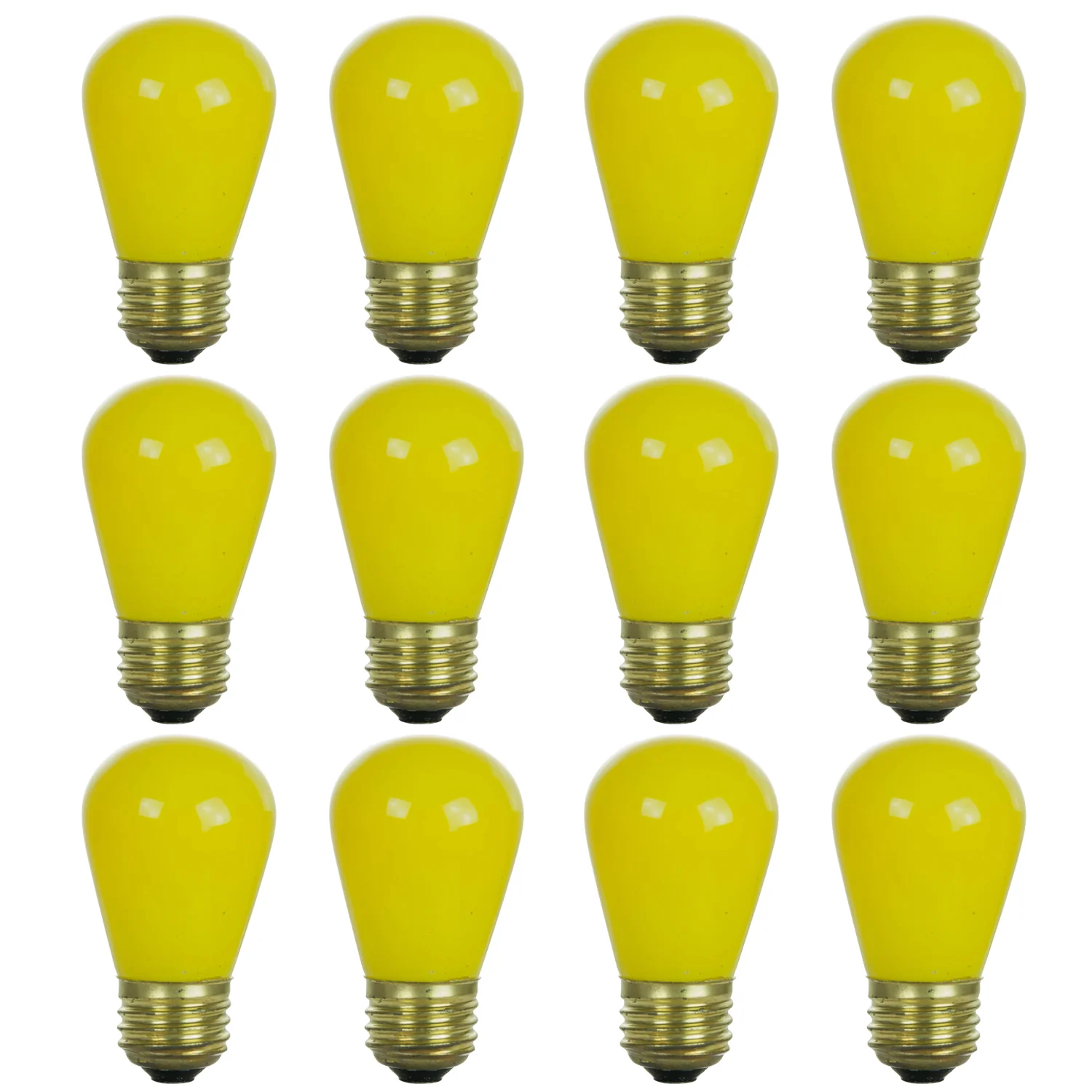 SUNLITE 41480-SU S14 Incandescent Colored Party String Light Bulb, 11 Watts, Medium Base (E26), Dimmable, Mercury Free, Yellow 12 Pack