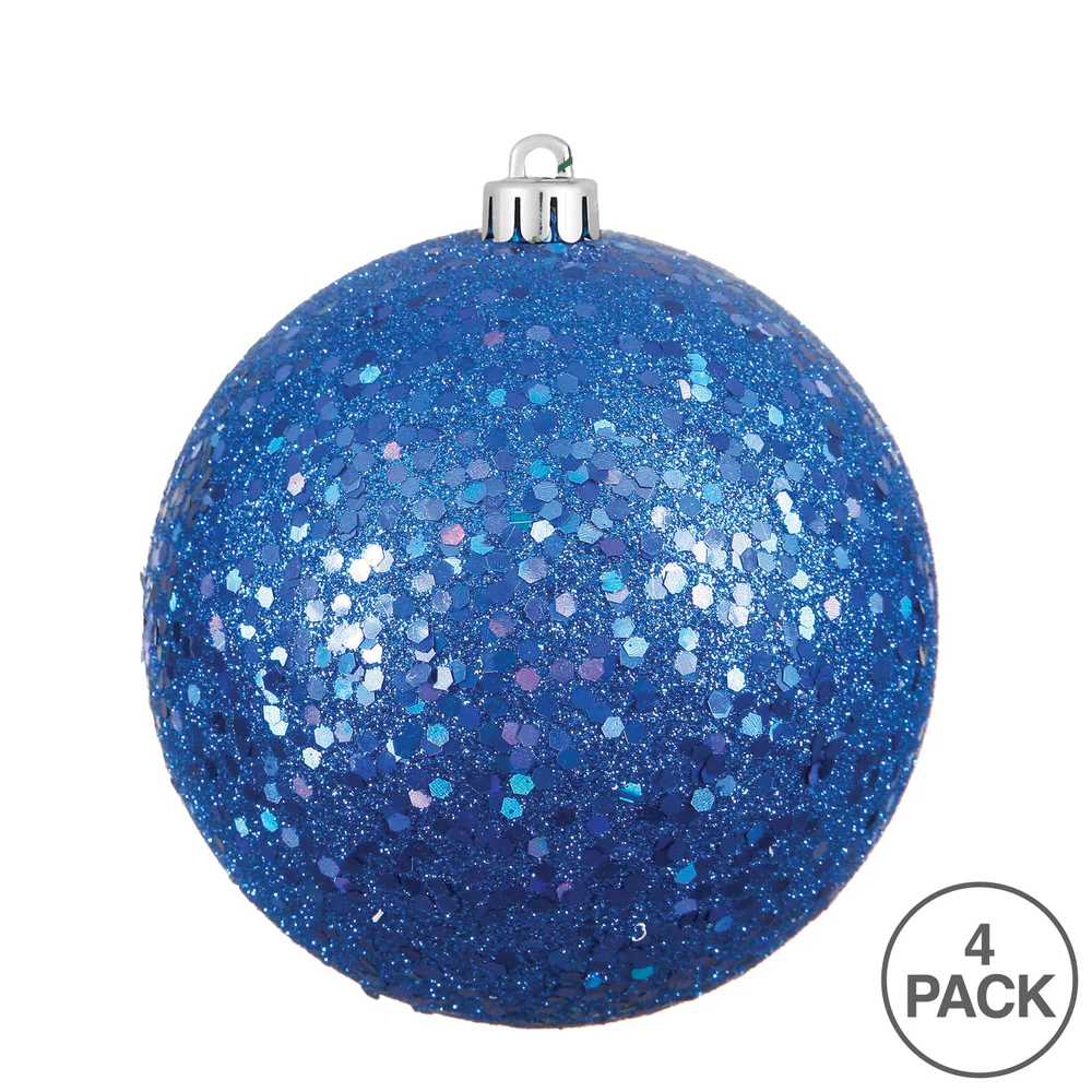 Vickerman 6" Blue Sequin Ball Ornament 4 per Bag