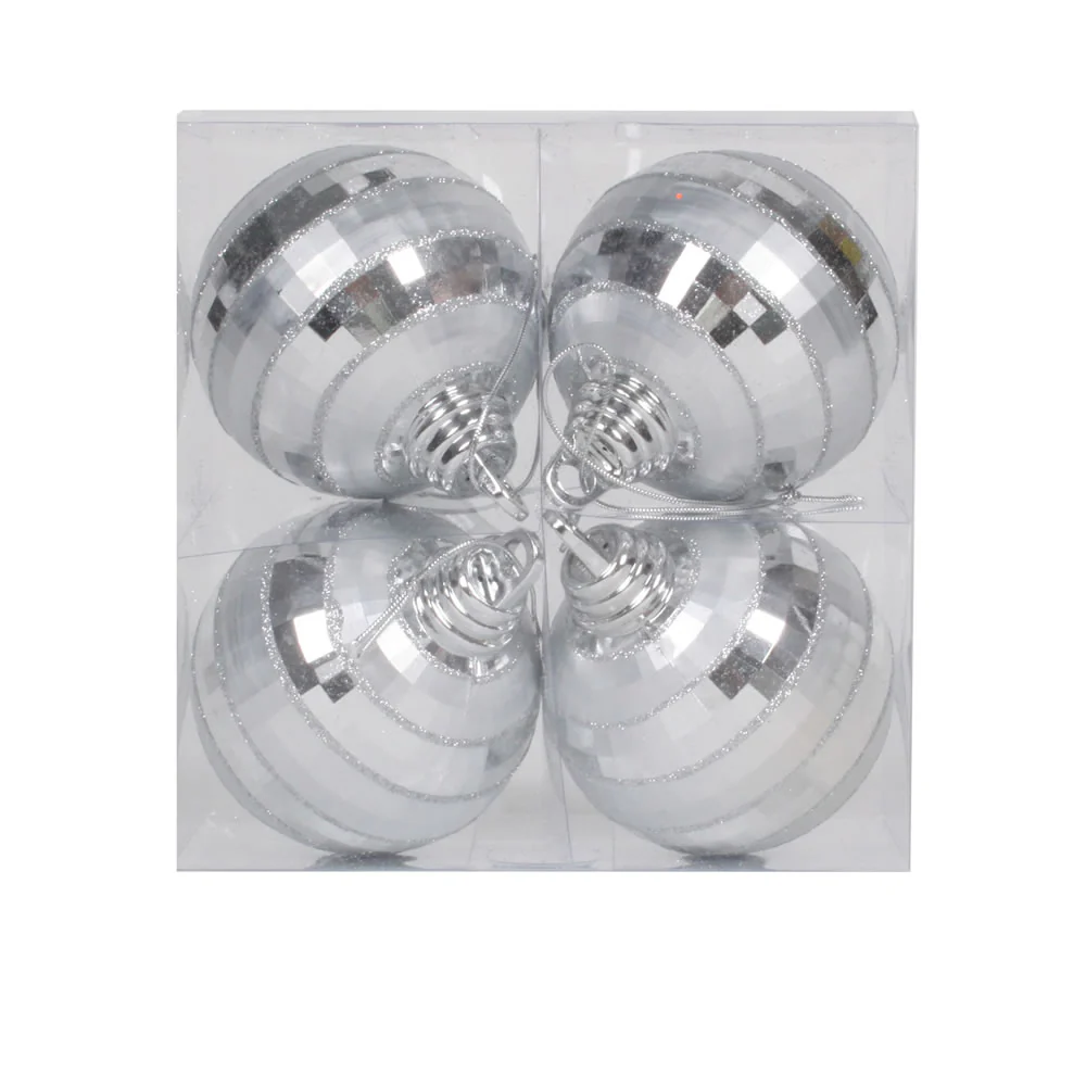 Vickerman 4" Silver Shiny and Matte Mirror Ball Christmas Ornament with Glitter Accents 4 per Box
