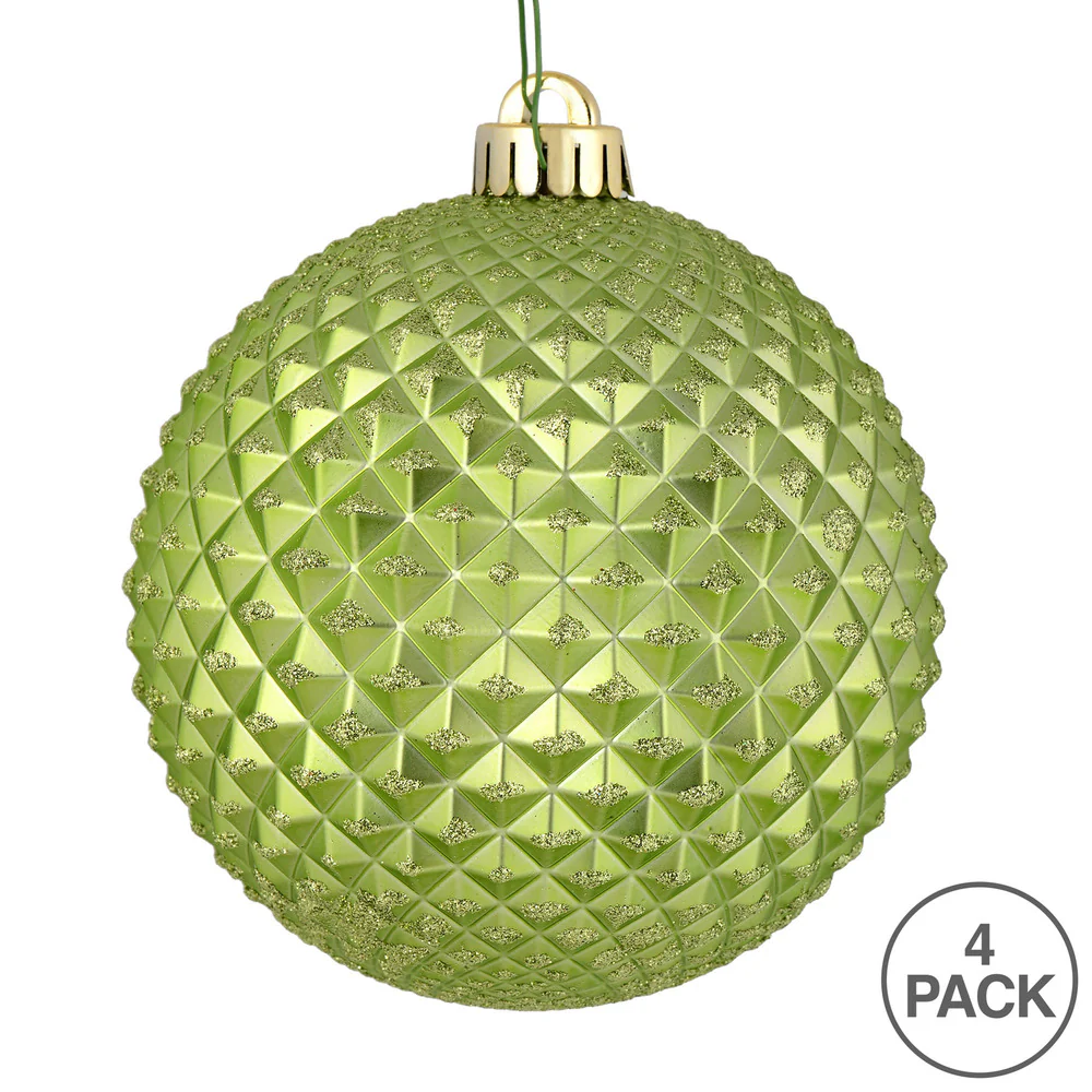Vickerman 6" Celadon Durian Glitter Ball Ornament 4 per Bag