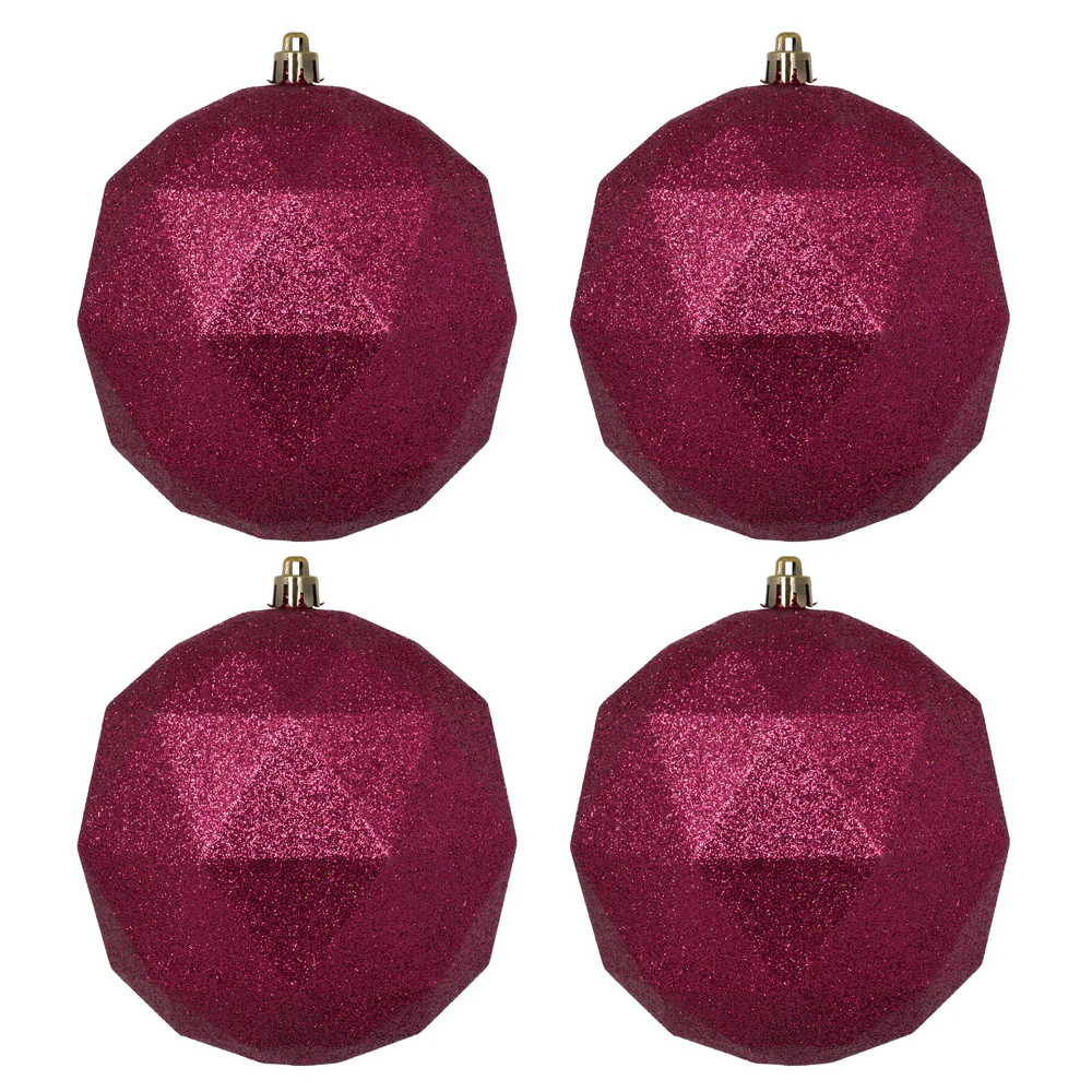 Vickerman 4.75" Berry Red Glit Geometric Ball 4/Bg