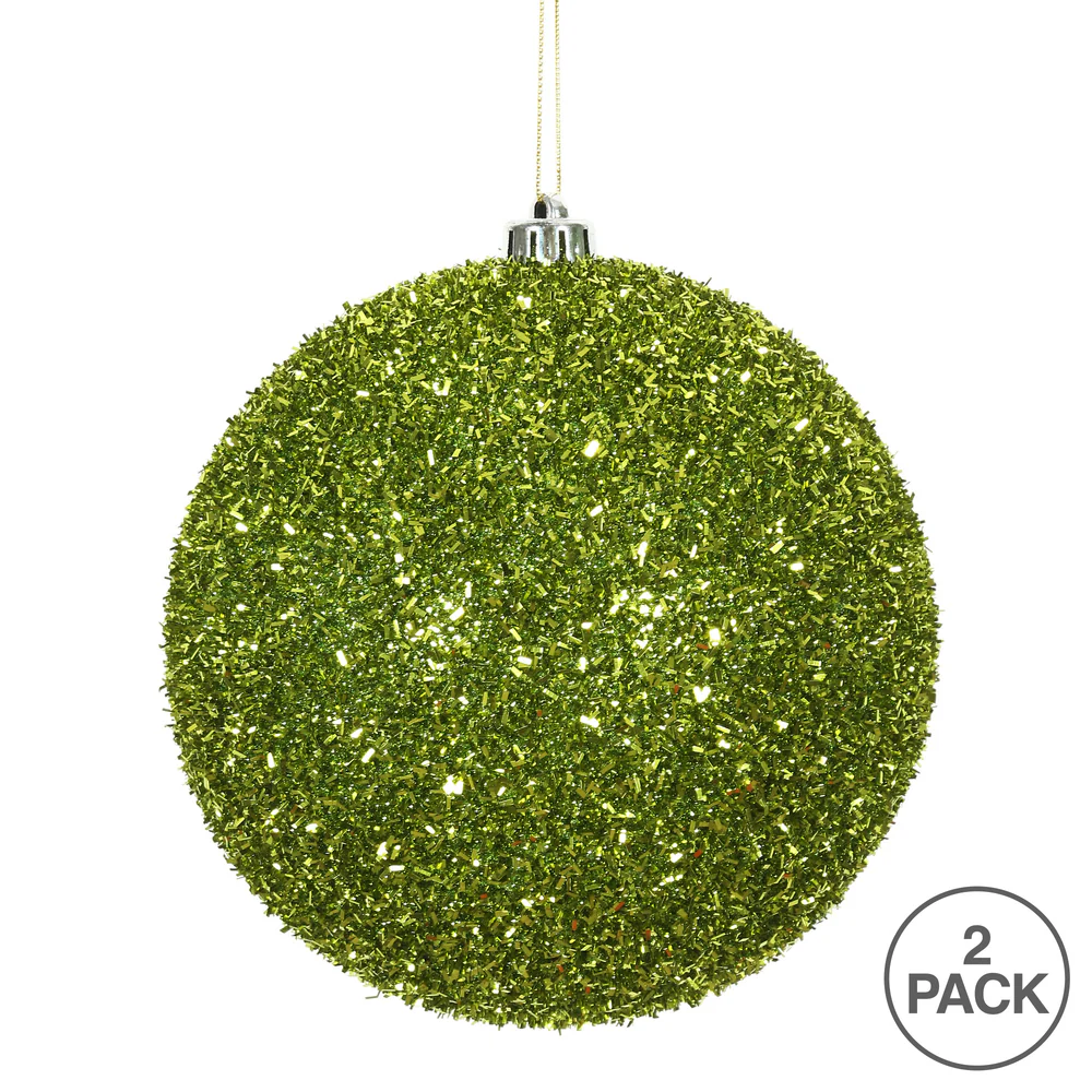 Vickerman 6" Lime Tinsel Ball Ornament 2 per Bag