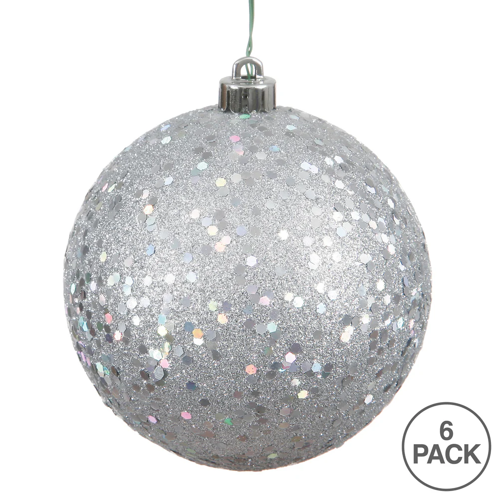 Vickerman 4" Silver Sequin Ball Ornament 6 per Bag