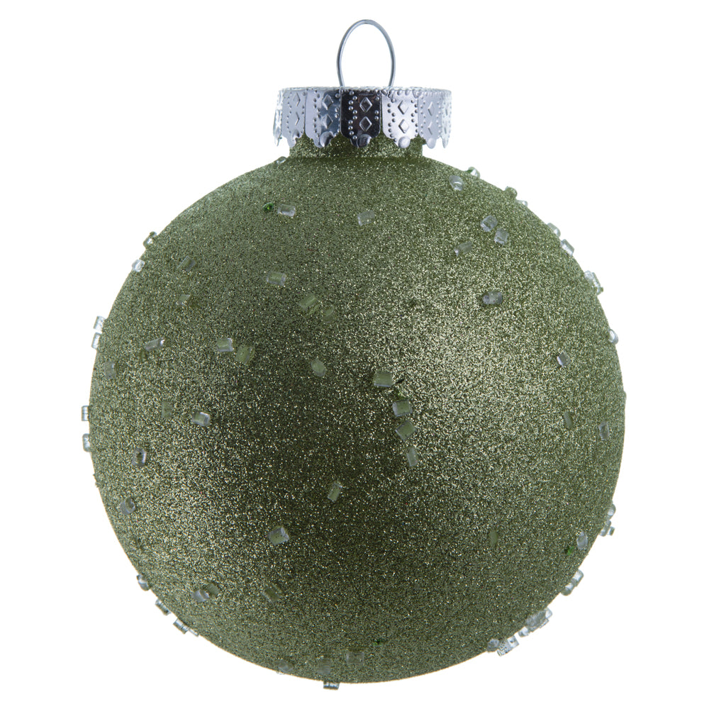 Vickerman 4.75" Celadon Ice Ball Ornament. This textured ornament has a rough and icy look with a hint of delicate sparkle. Incorporate these ornaments into your holiday design for added texture. Includes 4 pieces per pack. Made with shatterproof pla