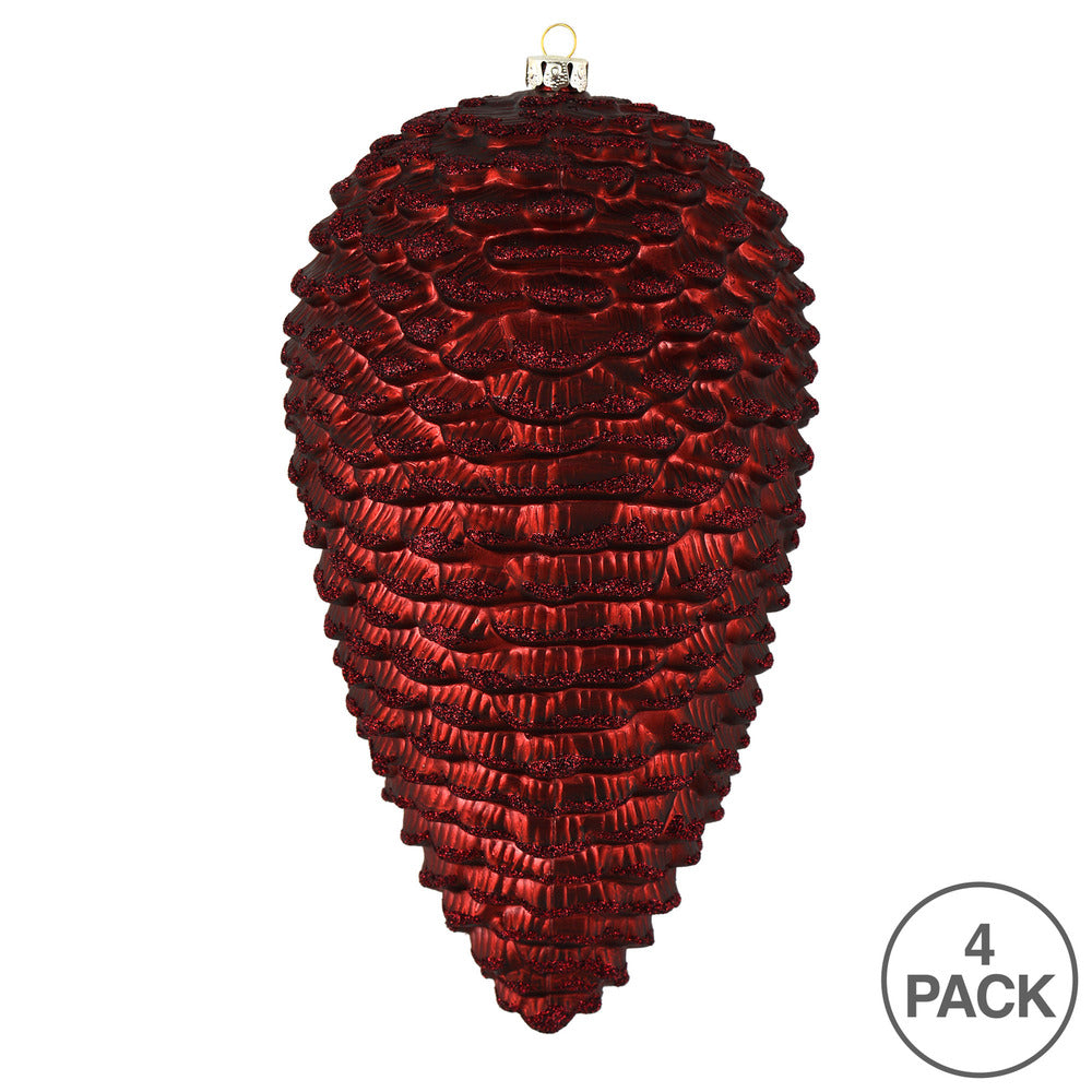 Vickerman 7" Burgundy Matte Glitter Pinecone Christmas Ornament 4 per set