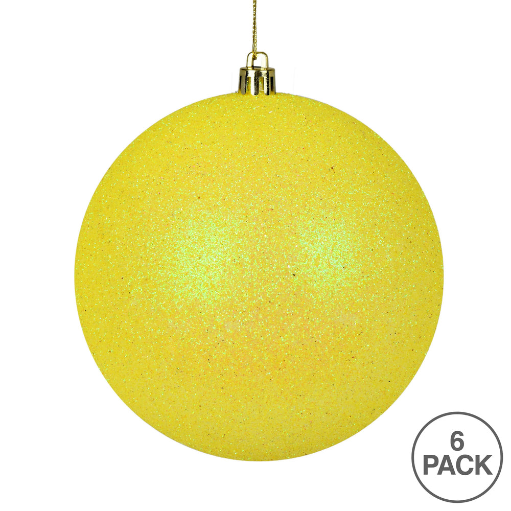 Vickerman 4" Yellow Glitter Ball Ornament 6 per Bag