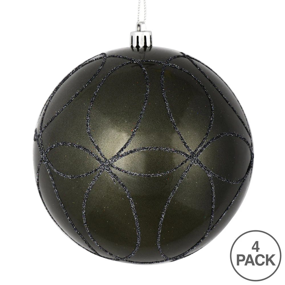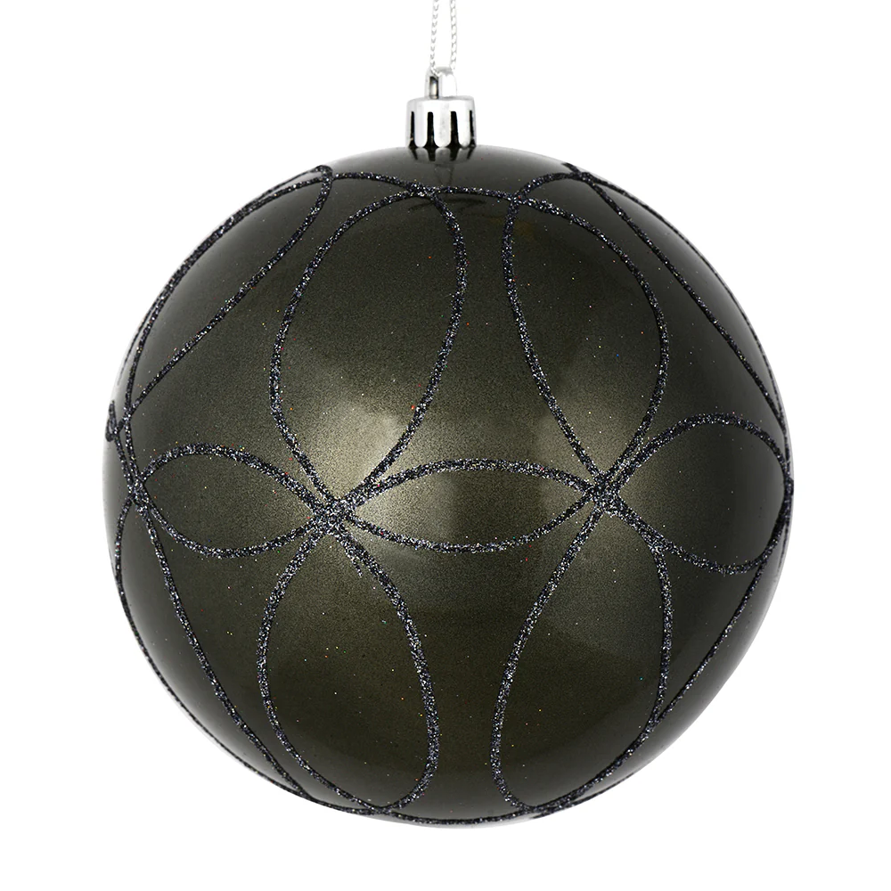Vickerman 4.75" Pewter Candy Ornament with Circle Glitter Pattern 4 per Bag