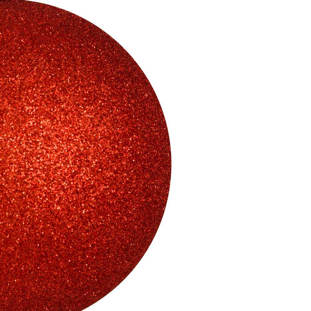 Vickerman 4" Red Matte Ball with Glitter Diamond Pattern. Add variety and sparkle to your holiday arrangement with this matte ornament that features a glitter pattern. Includes 4 pieces per bag. Made with shatterproof plastic. Ornament has a drilled