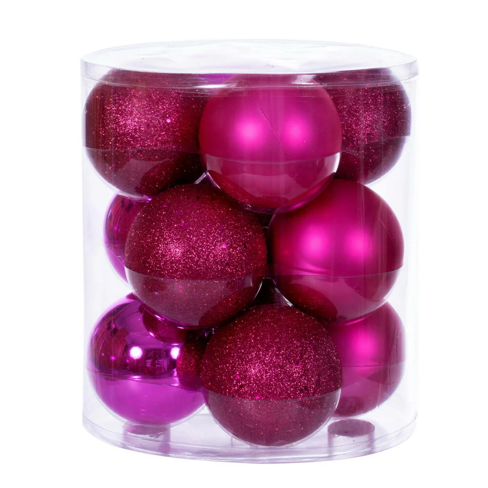 Vickerman 4" Hot Pink 4-Finish Ball Ornament 12 per box.