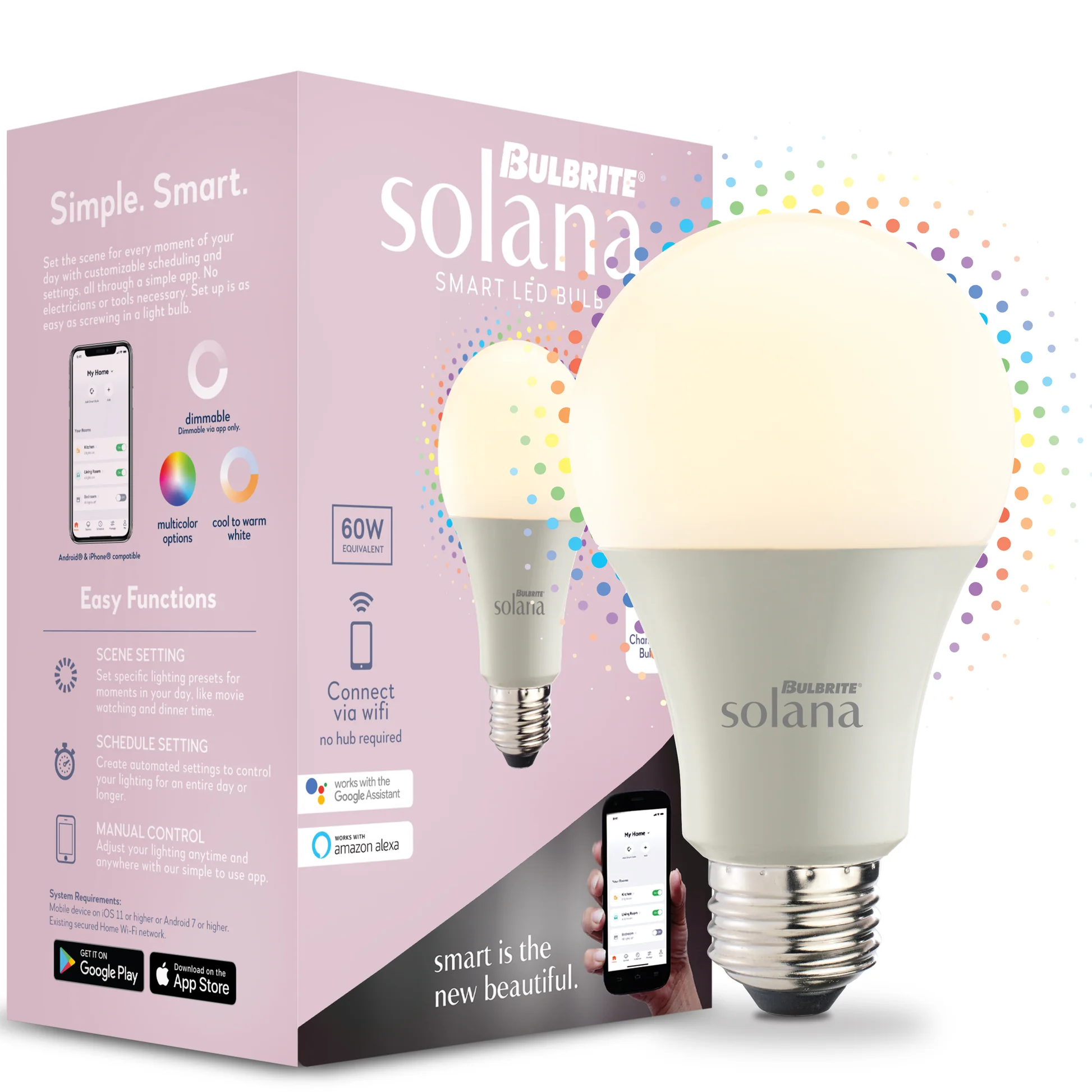 Bulbrite Solana Pack of (2) 9 Watt A19 Smart WiFi Connected LED Light Bulbs with Medium (E26) Base, Color Changing and Tunable White Light