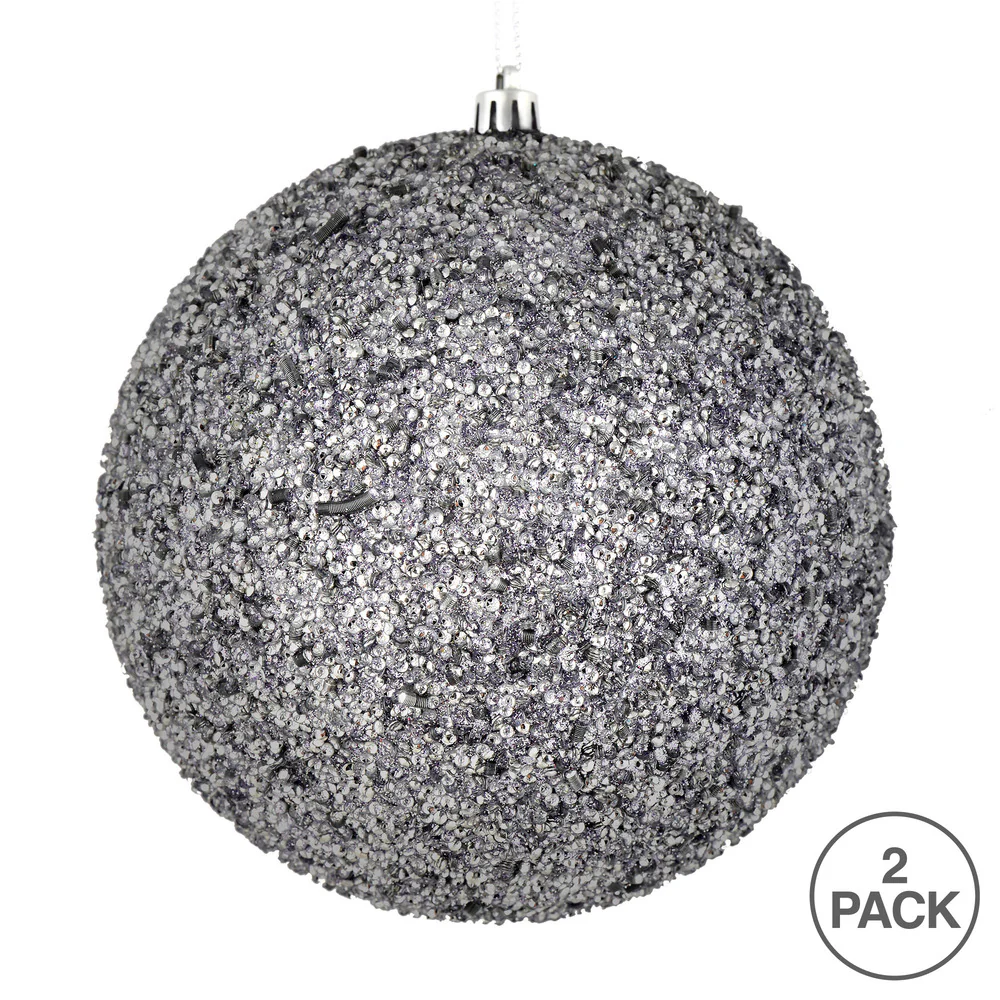 Vickerman 8" Silver Beaded Ball Ornament 2 per Bag