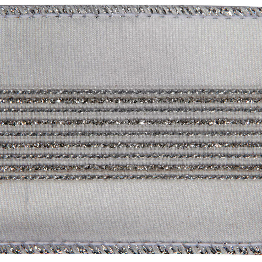 Vickerman 2.5" x 5 Yards Silver Glitter Dori Trim Dupion Ribbon.
