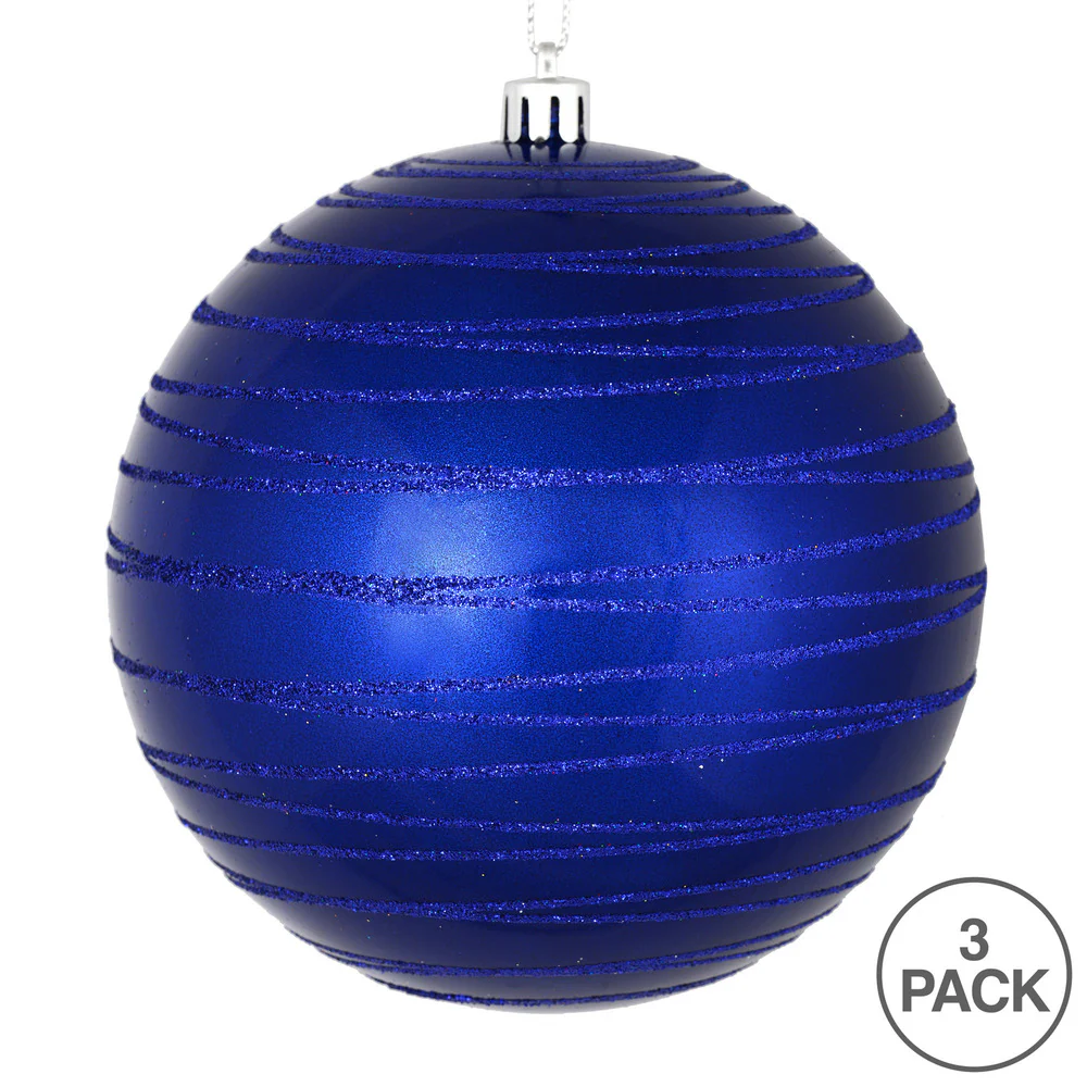 Vickerman 6" Cobalt Blue Candy Finish Ball Ornament with Glitter Lines 3 per Bag