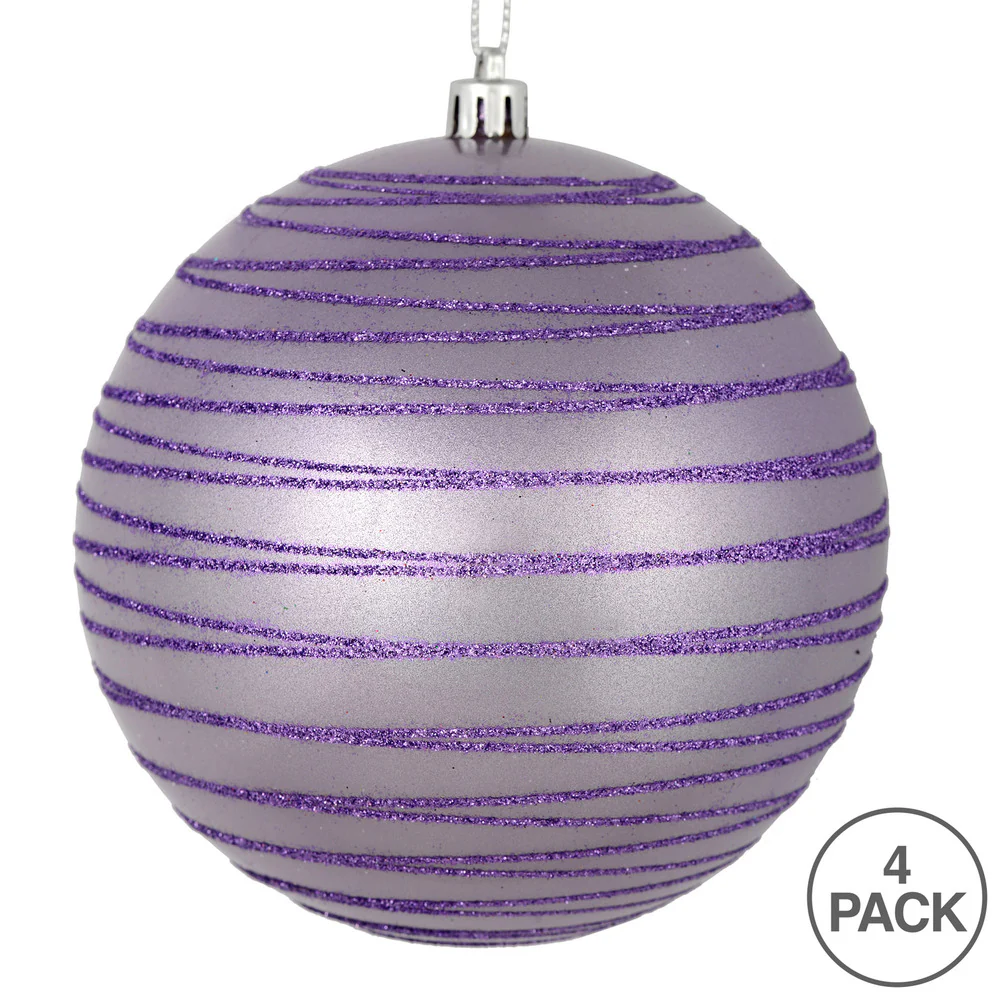 Vickerman 4" Lavender Candy Finish Ball Ornament with Glitter Lines 4 per Bag