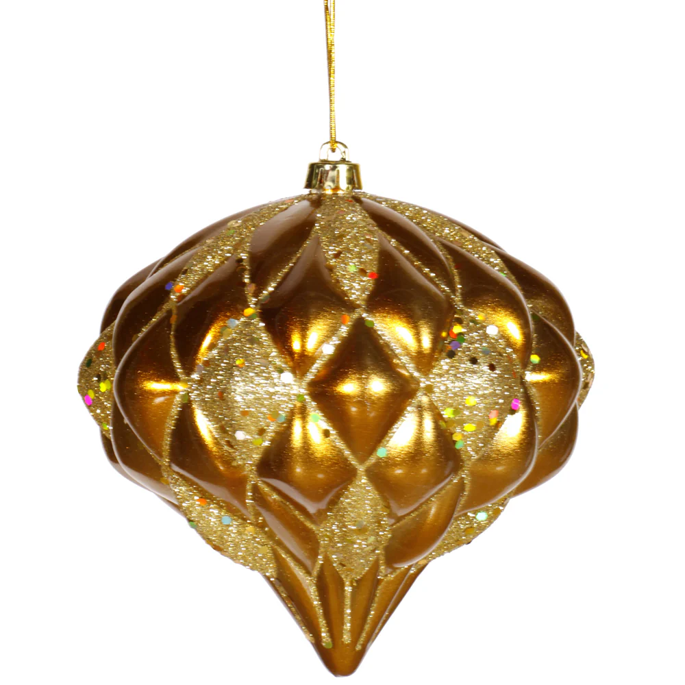 Vickerman 5.7" Antique Gold Matte/Glitter Diamond Onion Christmas Ornament
