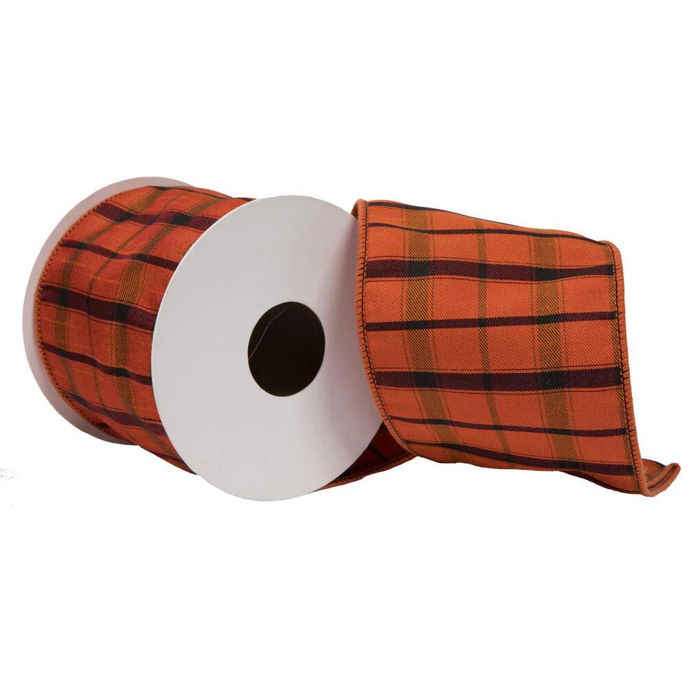 Vickerman 4" x 10 Yards Gray Dupion Plaid Ribbon