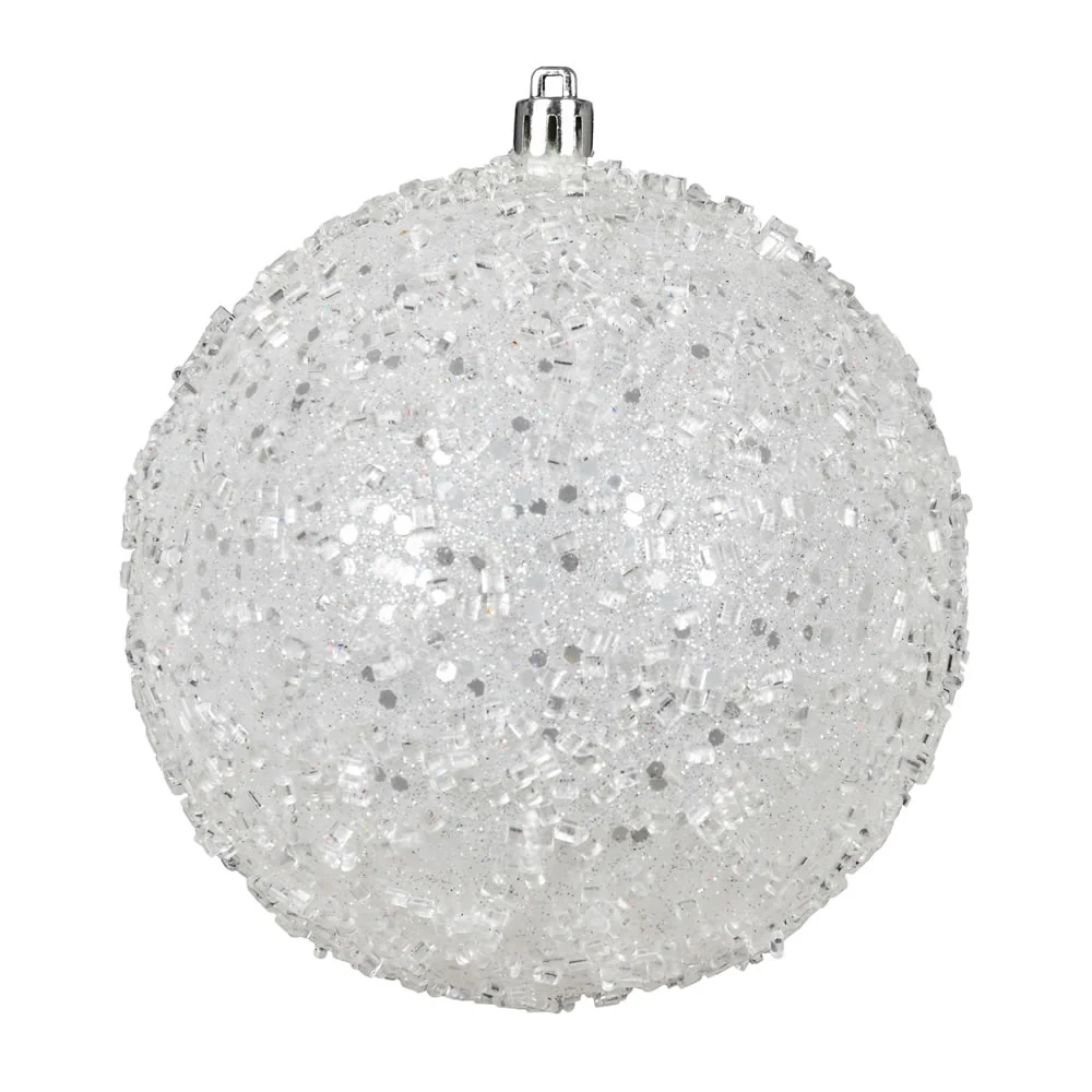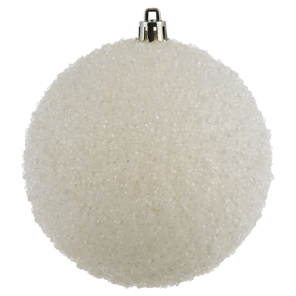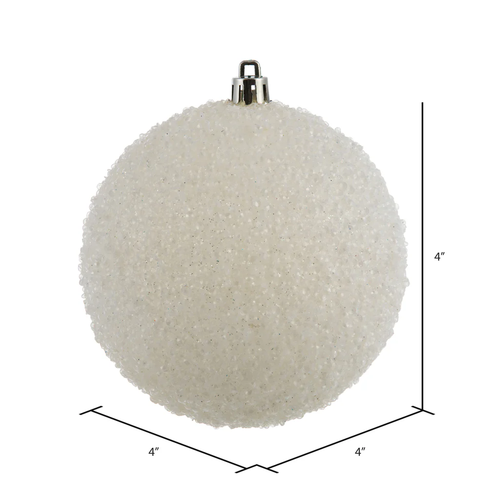 Vickerman 6" White Glitter Hail Ball Ornament 4 per Bag